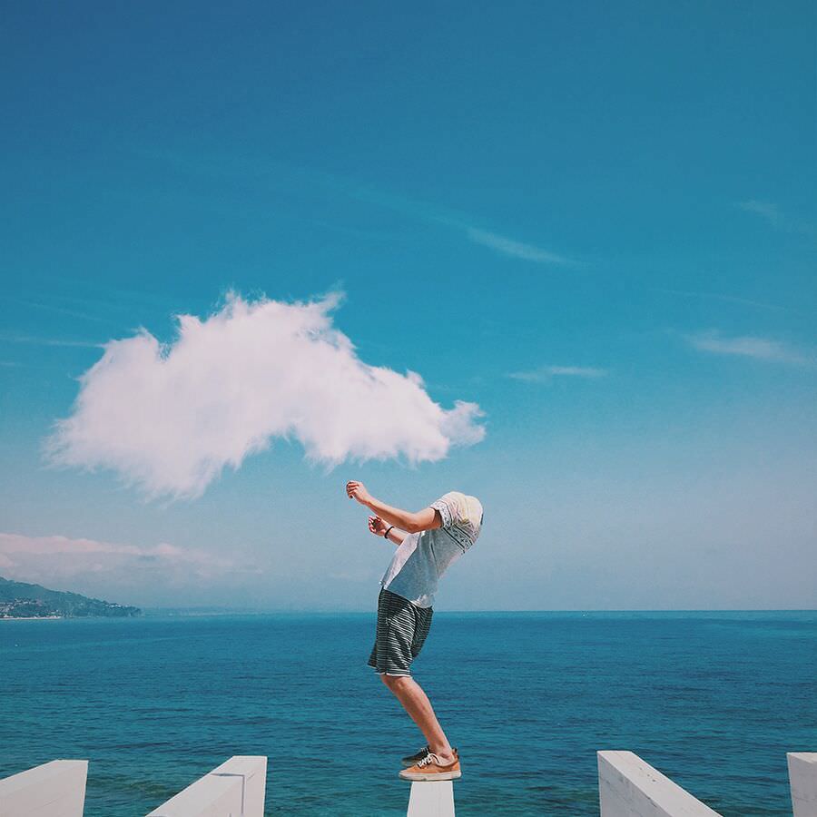 The idea for the #LoosingMyMind project came to Pepe one day on the beach: conceived as a statement against the fake, perfected beauty of over-edited photos, he took the idea a leap further by editing the heads out of the photos entirely, thus shifting the focus and interest to the graphics and the edit itself. In a way, it is the ultimate anti-selfie concept.